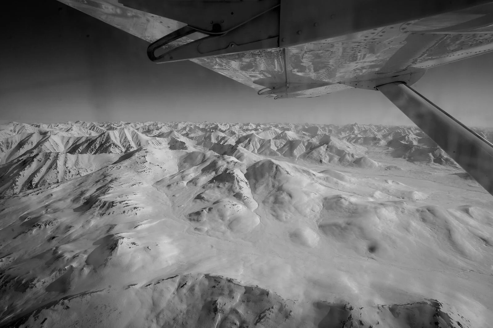 We flew from Fairbanks North over the Yukon River and into the Brooks Range. The plane seemed to move faster through the sky than we could process. There was so much to study as our eyes scrambled to see and know. We followed the trans-Alaska pipeline, traced the braids of the Yukon, looked for ski lines on as many mountains as we could, mouthed excited faces to each other, and admired the lonesome cabins speckled here and there.